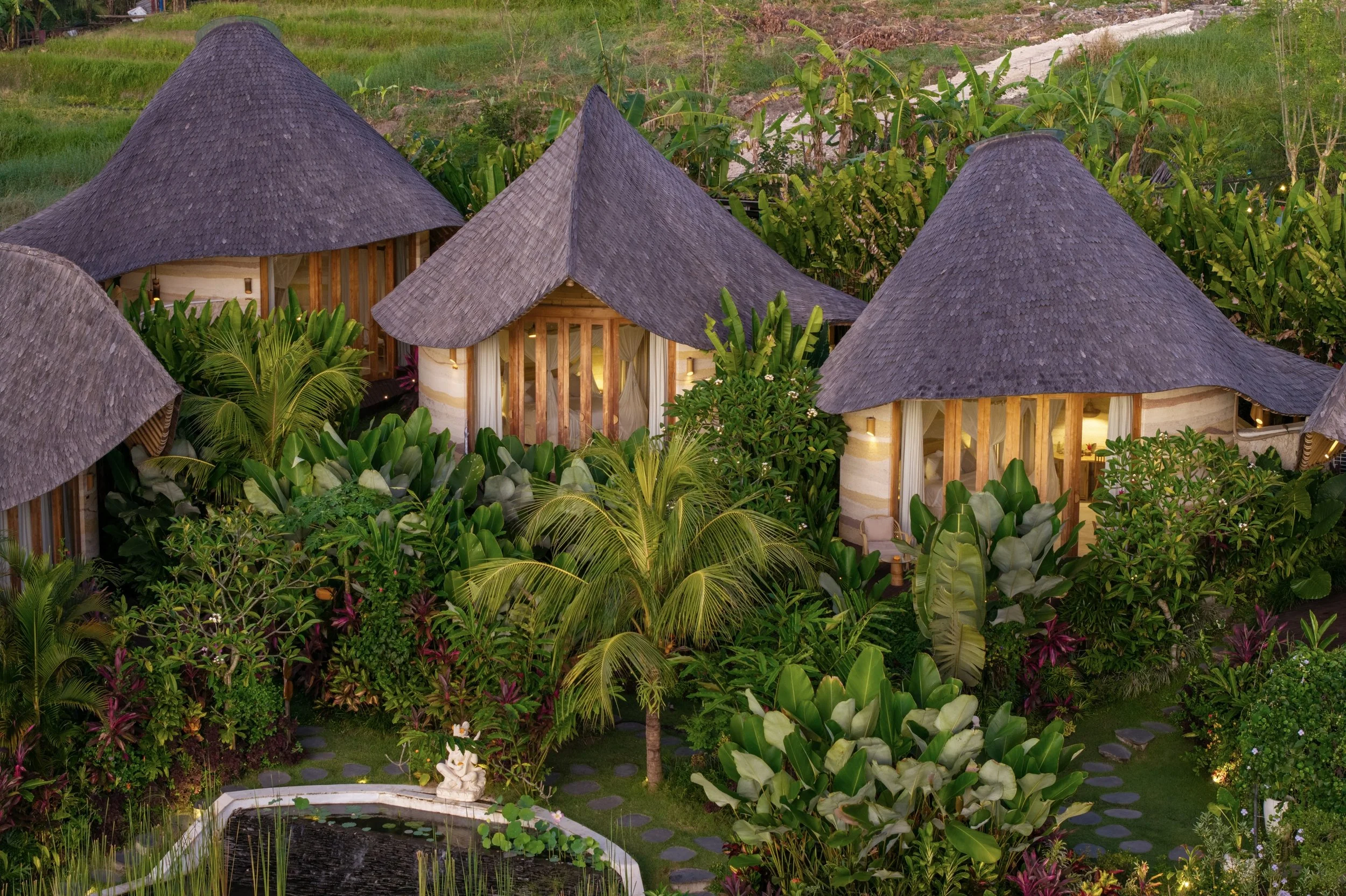 The property includes rammed-earth and jungle-view villas along with amenities like a sauna, an ice plunge, a spa, and tucked-away corners for rest and reflection. Surrounded by lush greenery, flowing water, and the gentle sounds of the jungle, Solana creates a calming setting where retreat attendees can settle in, slow down, and feel supported. With thoughtful hospitality, nourishing meals, and a strong connection to local culture, Solana offers a grounded and meaningful way to experience the heart of Bali.